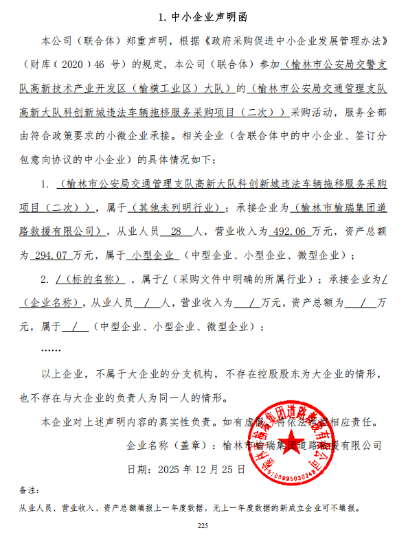 合同包1(榆林市公安局交通管理支队高新大队科创新城违法车辆拖移服务采购项目(二次)):