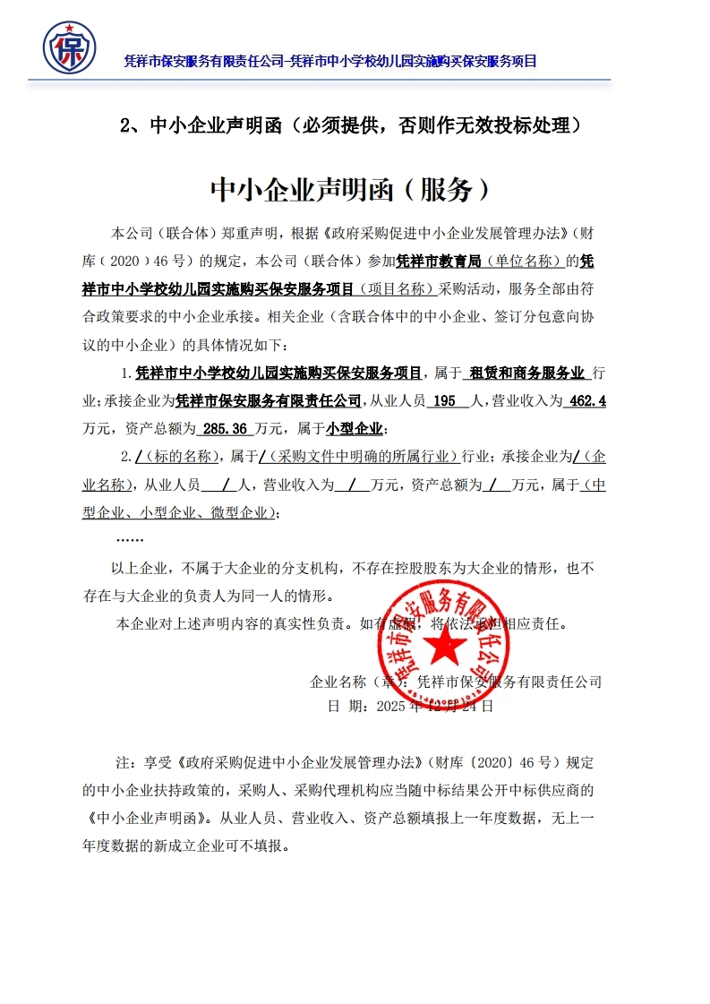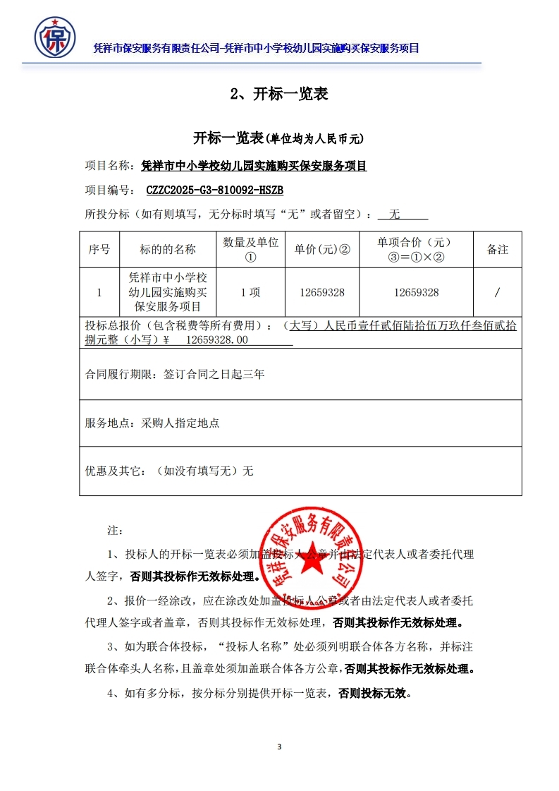 二、项目名称:凭祥市中小学校幼儿园实施购买保安服务项目