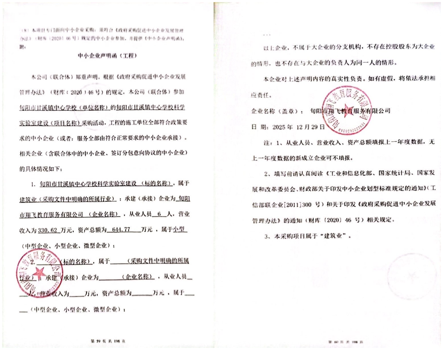 | 1 | 其他安装 | 旬阳市甘溪镇中心学校科学实验室建设 | 旬阳市甘溪镇中心学校科学实验室建设 | 合同签订后10个日历日内实施完成 | 张孝益 | / | 105,875.00 |