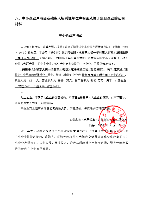 | 1 | 兴桂路(永福东大街-子材东大街段)道路维修工程 | 兴桂路(永福东大街—子材东大街段)道路维修工程 | 工程预算书、施工图纸包含的全部内容。 | 30 日历天 | 冯传中 | 市政公用工程专业二级建造师(桂245131436888) |