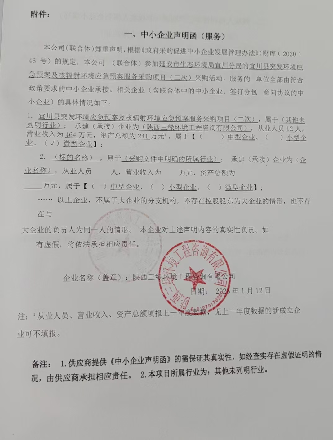 合同包1(宜川县突发环境应急预案及核辐射环境应急预案服务采购项目(二次)):