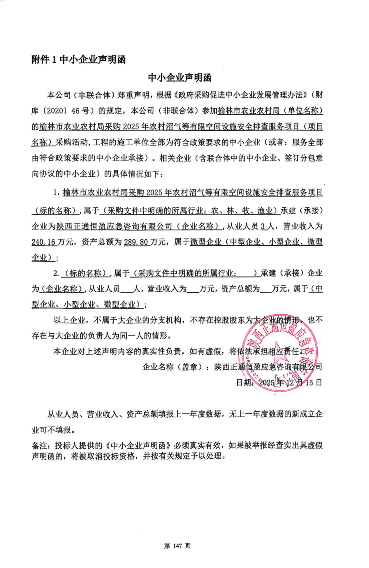 合同包1(榆林市农业农村局采购2025年农村沼气等有限空间设施安全排查服务项目):