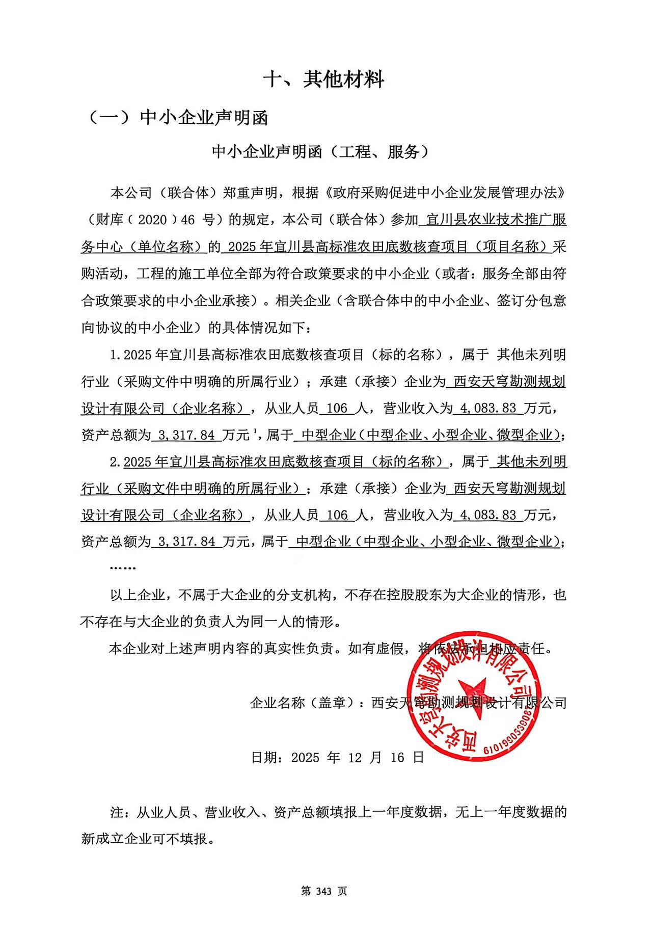 | 1 | 其他专业技术服务 | 2025年宜川县高标淮农田底数核查项目 | 采购文件要求的全部范围 | 满足采购文件要求 | 合同签订后180天 | 满足国家标准及采购文件要求 | 293,800.00 |