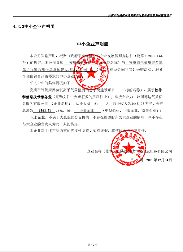 合同包1(安康市气候康养负氧离子气象监测信息系统建设项目):