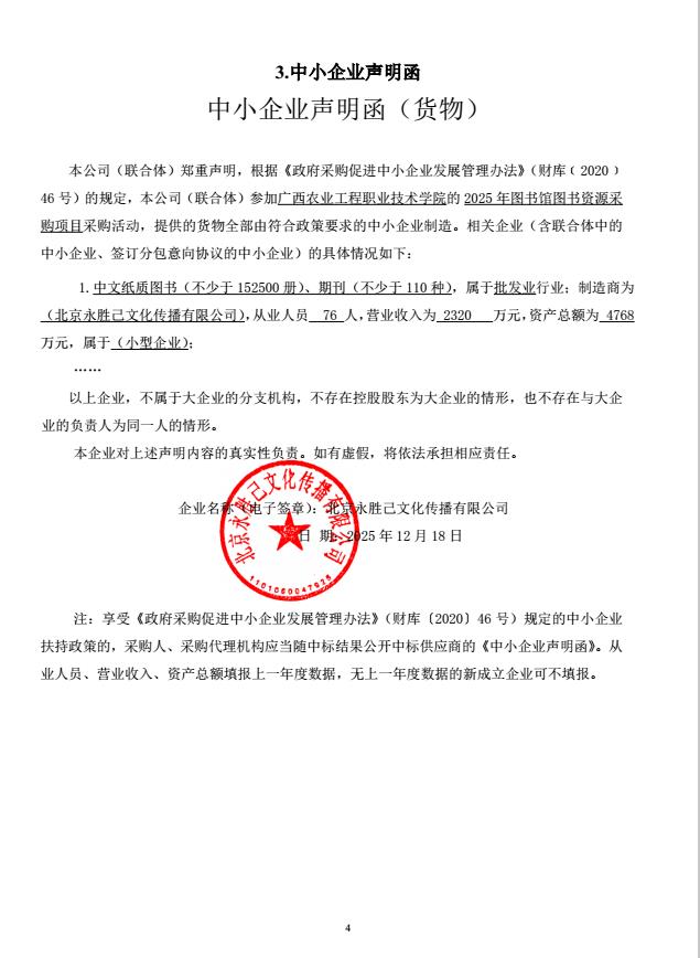| 1 | 专业类书籍:40(%),通用类书籍:28(%),2026年期刊:95(%) | 北京永胜己文化传播有限公司 | 北京市丰台区卢沟桥杜家坎环岛北侧宛平货运院内18号-1 |