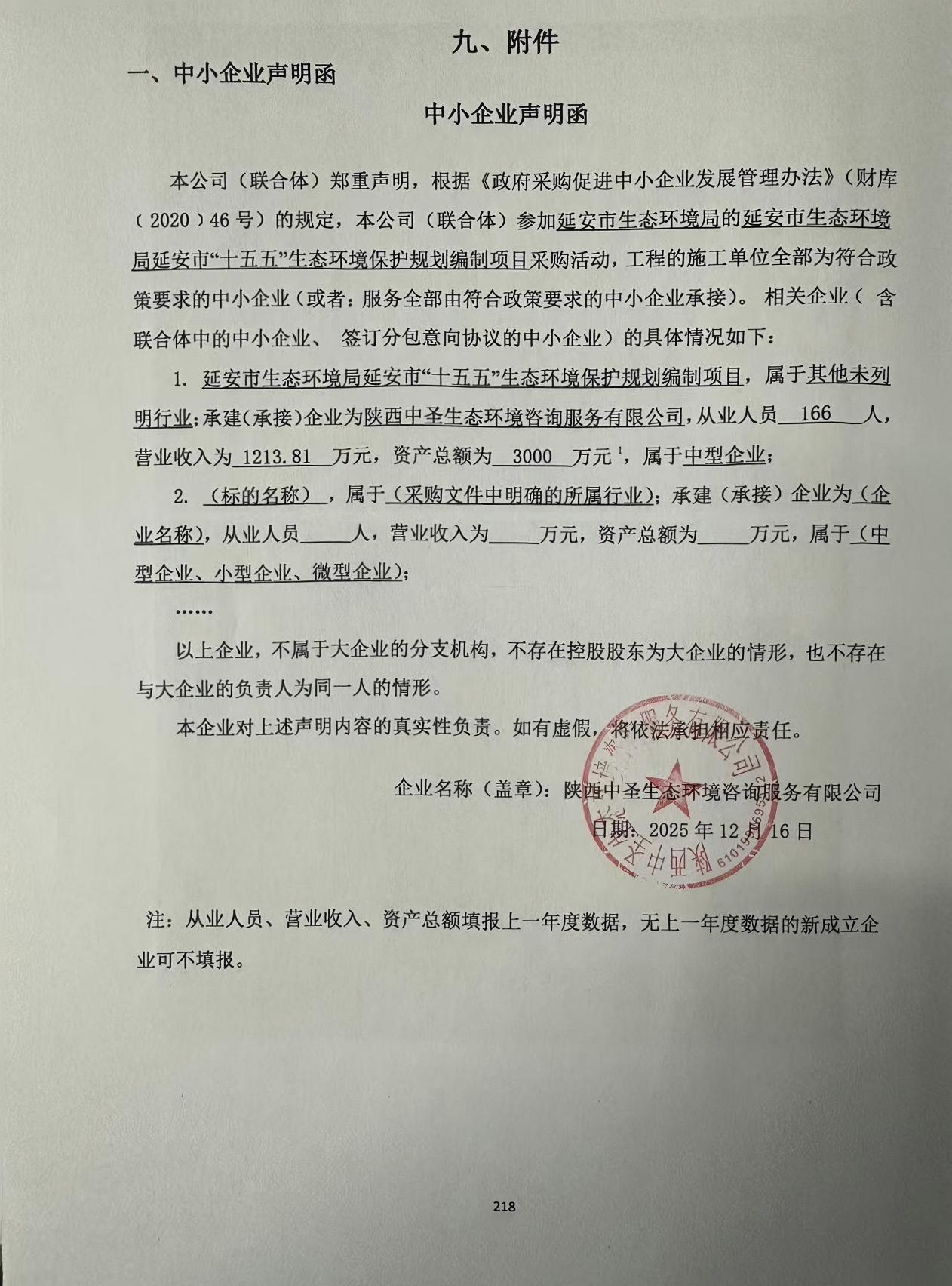合同包1(延安市生态环境局延安市“十五五”生态环境保护规划编制项目):